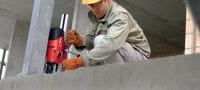 - Mit der Hilti BI+ Schnellaufnahme können Sie Bohrkronen in Sekunden wechseln – kein Werkzeug erforderlich (werkzeugloses System)