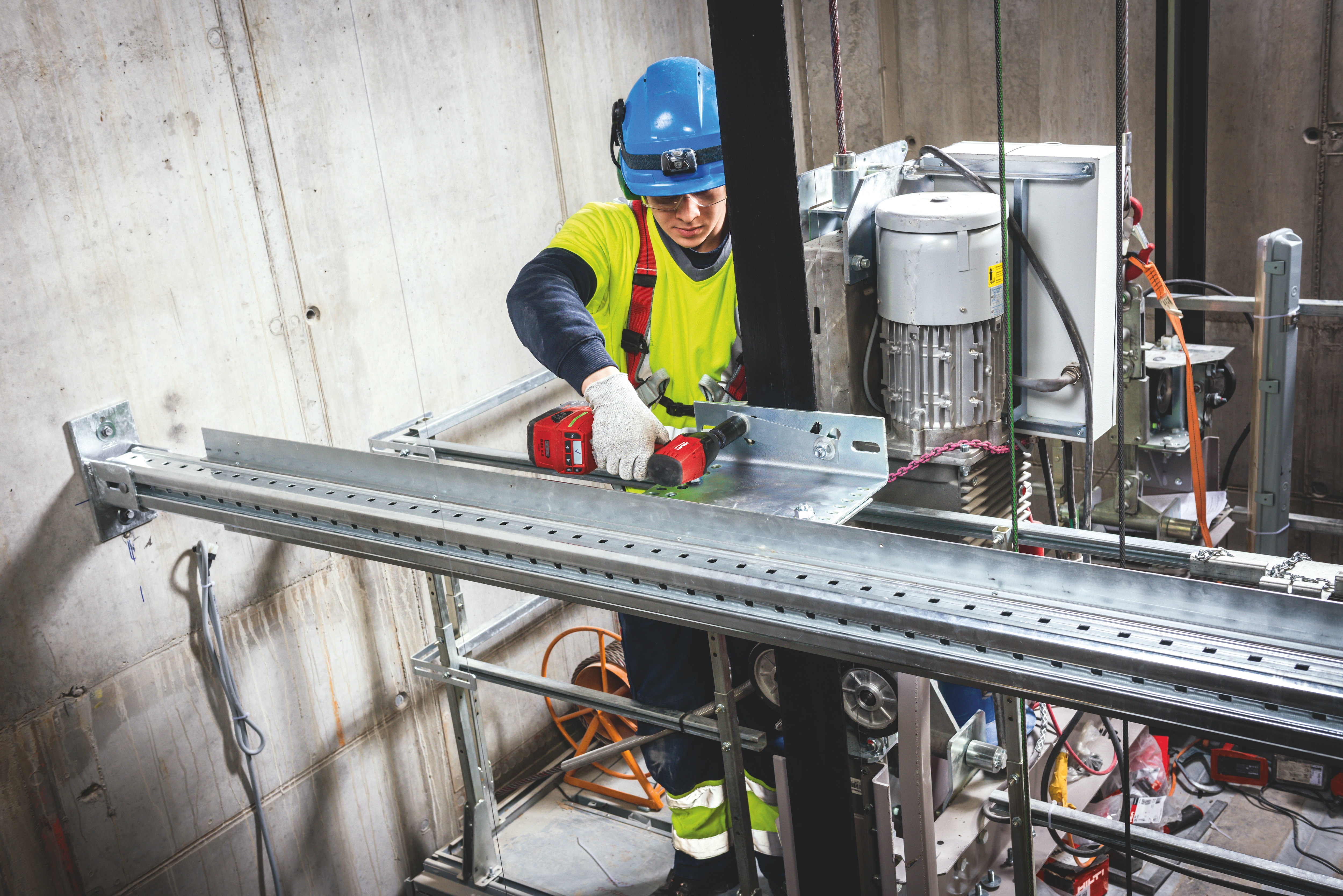 Les composants des ascenseurs devraient sortir d’usine prêts à installer dans la cage. Dans le monde réel, ce n’est pas toujours le cas. En particulier quand il s’agit de moderniser une cage, vous pouvez avoir besoin d’adapter les composants en acier en les découpant et en les meulant. Les outils sans fil compacts et silencieux, utilisables dans des espaces confinés, sont très précieux dans de tels cas. Notre gamme d’outils inclut des meuleuses d’angle sans fil, des coupe-câbles et des pinces à sertir, des outils de découpe, des scies et des perceuses avec des fonctions de sécurité avancées comme la régulation active du couple. Les outils sans fil Hilti sont conçus sur la même plateforme de batteries 22 V interchangeable. Vous pouvez aussi profiter de notre gestion de parc d’outils, plus d’un service de réparation et de remplacement en 3 jours garantis, ce qui réduit les arrêts à un minimum et augmente la productivité.