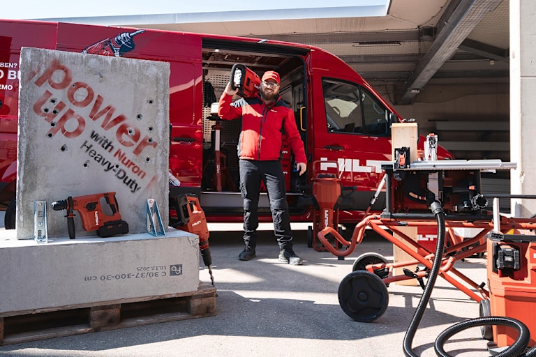 Wir gehen auf die Strasse. Mit unserem speziell umgebauten Hilti Van und weiteren Extras besuchen wir 10 Stores in der ganzen Schweiz – und bringen die Nuron-Geräte für härteste Einsätze direkt zu Ihnen. Kein Katalog. Kein Bildschirm. Sie testen selbst.
