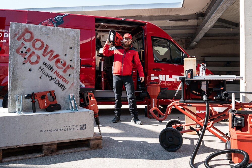 Was erwartet mich vor Ort? Live-Demos, persönliche Beratung durch Hilti-Experten, unser umgebauter Hilti Van – Essen und Getränk geht aufs Haus.