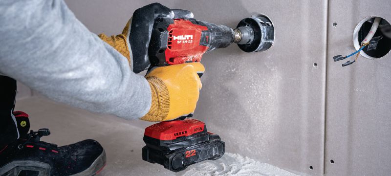 - Foratura e avvitatura più rapide – fornisce il numero di giri/minuto e la coppia più elevati di tutta la gamma di trapani a percussione compatti Hilti grazie alle batterie ad elevata potenza Nuron